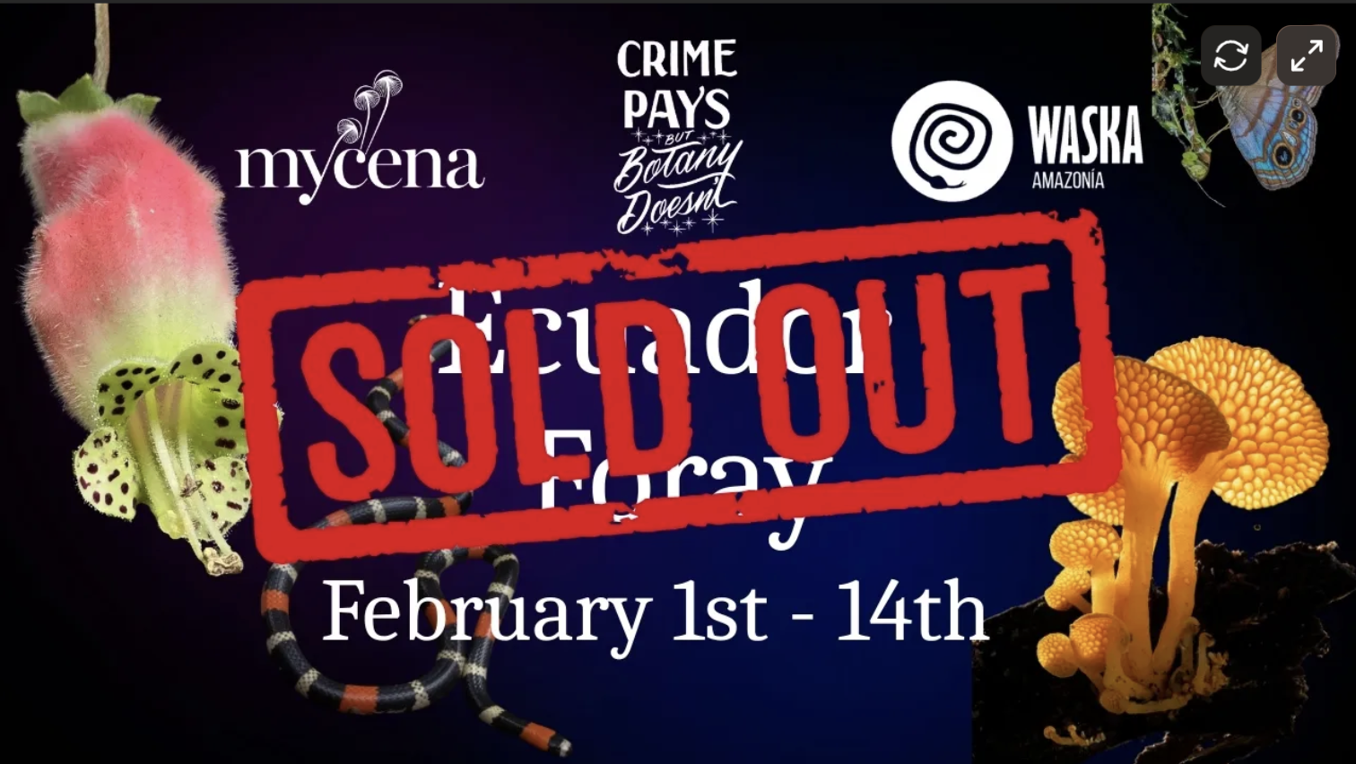 We are happy to announce that the Ecuador Adventure Foray completely sold out this year! Given the success of this event over the last few years, it’s highly likely we will bring this event back in 2027. If you didn’t get your ticket in time, you might still be in luck next year, though we never make promises until the event is officially announced. If you want to get in on the adventure sooner, please consider joining us in Peru at the end of February!