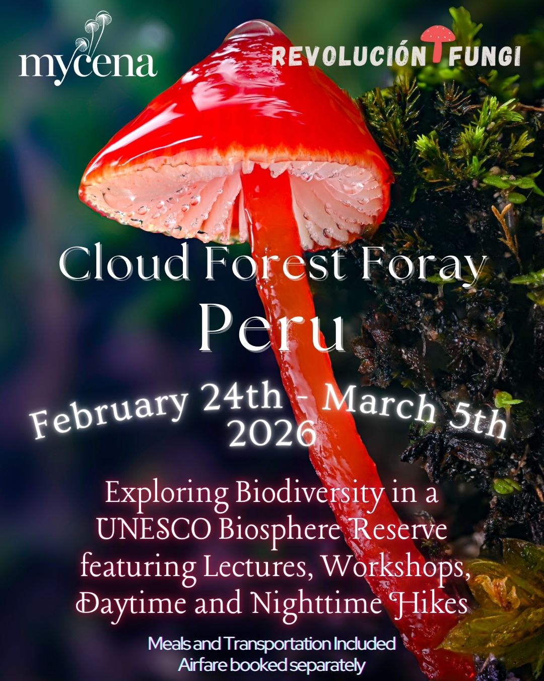 Our favorite logistics point person Jeremy will be joining us for this one, given his extensive experience traveling in Peru. We are also collaborating with Sebastián, founder of Revolución Fungi, an organization that promotes fungi for food sovereignty, taxonomy, and cultural/spiritual connections in Peru. It empowers local communities through education, forays, and projects that highlight Amazonian and Andean fungal diversity. We are personally inspired by the work being done by Revolución Fungi, as a force for mycological progress in Latin America. Sebastián also holds permits in the Oxapampa region to collect fungi for DNA sequencing, which perfectly aligns with our research.